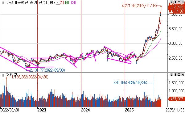콬스피가 4220포인트를 최고점을 올리면서 푀고치 포인트를 확보했다